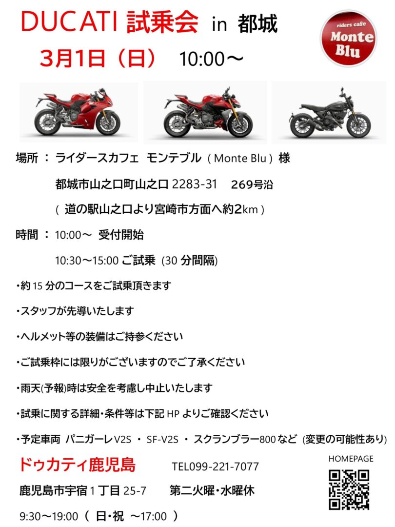 予告させて頂いております3月1日の試乗会ですが下記の内容で予定しておりますご試乗いただける車両はあと1~2台追加で調整中ですご来場お待ちしております